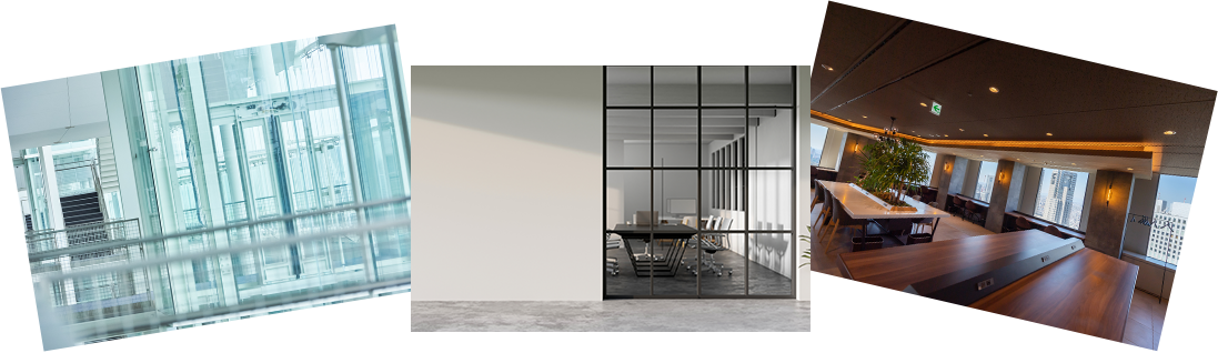 軽天ボード工事や、ガラス、サッシなど内装の骨組みから内装デザインまで対応します。どことも被らない、唯一無二の空間をお届けいたします。